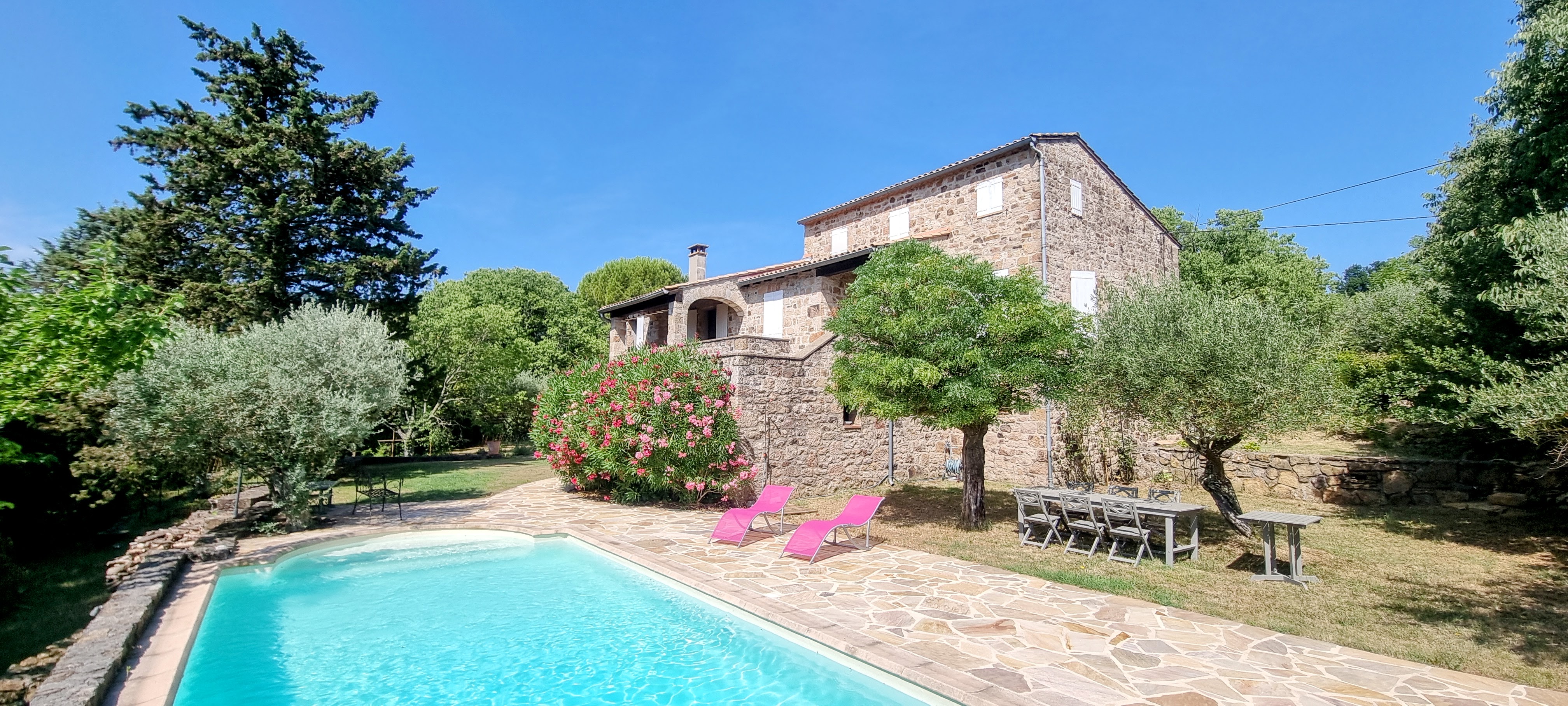 Nous l'avons cherché longtemps cette maison aux oliviers ancrés sur des accols, ces terrasses aux murets de pierres sèches des cévennes. Elle est conçue dans les années 70 par un architecte et construite avec les pierres rosées et dorées d'une ferme de Payzac, à 15 kms de là.